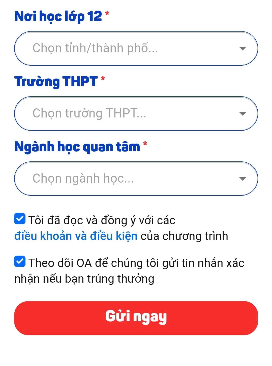 - Yêu cầu Quan tâm OA tại điểm hoàn thành form / nhận kết quả test / nhận quà tặng để kết hợp lấy thông tin thí sinh và tăng follower OA cùng lúc
